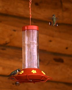 ハミングバード(蜂鳥)が、軒先の蜜入れに集まってきました。