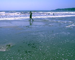 押し寄せる波が作る泡と、海鳥の姿が面白くてシャッターを切った。