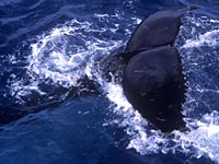 ホエールウォッチングに出かけた私達の前に、クジラはサーチングと呼ばれる立ち泳ぎの姿勢で海面に顔を突き出した。