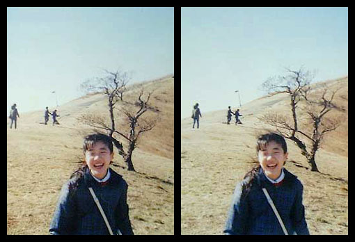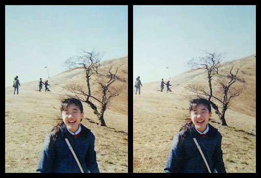 Taken at the top of Mt. Omuro which is the 581m hight volcano located in Izu-Kougen. It was very windy. She is my daughter.